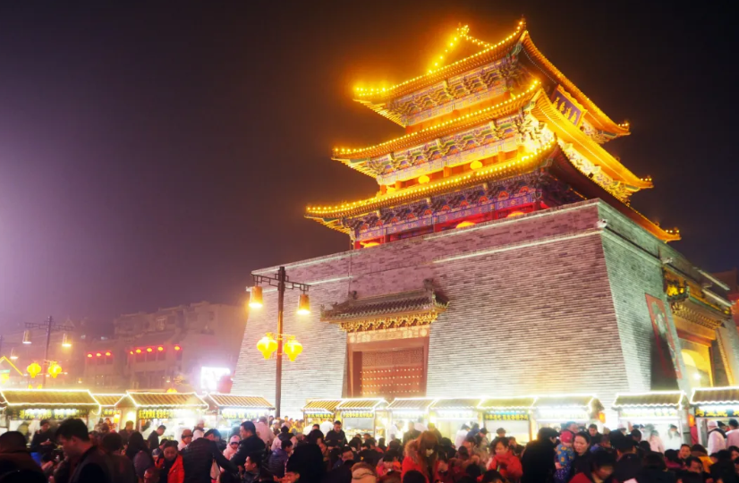 开封鼓楼开封鼓楼,是开封的标志性建筑之一,鼓楼建筑庄重而古朴,斑驳的墙体诉说着的历史,威严齐整的鼓楼见证着岁月的变迁,夜晚亮灯后的鼓楼仿佛穿越回到了北宋,繁华迷人~另外鼓楼下面,是开封最大的夜市,人潮涌动,烟火气十足!